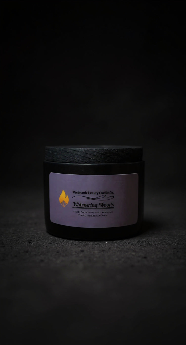 Divinorah Luxury Candle Co. Whispering Woods Scented Candle, Black Matte Glass Jar, Virgin Coconut Soy Blend, 4 oz, Fall Collection, Natural Fragrance